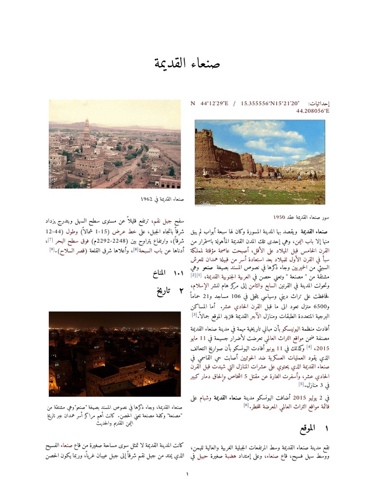 صنعاء القديمة pdf. Save save صنعاء القديمة pdf for later. Search inside document. You are on page 1 of 17. تقع في وسط البلاد في منطقة جبلية عالية على جبال السروات ترتفع عن سطح البحر.