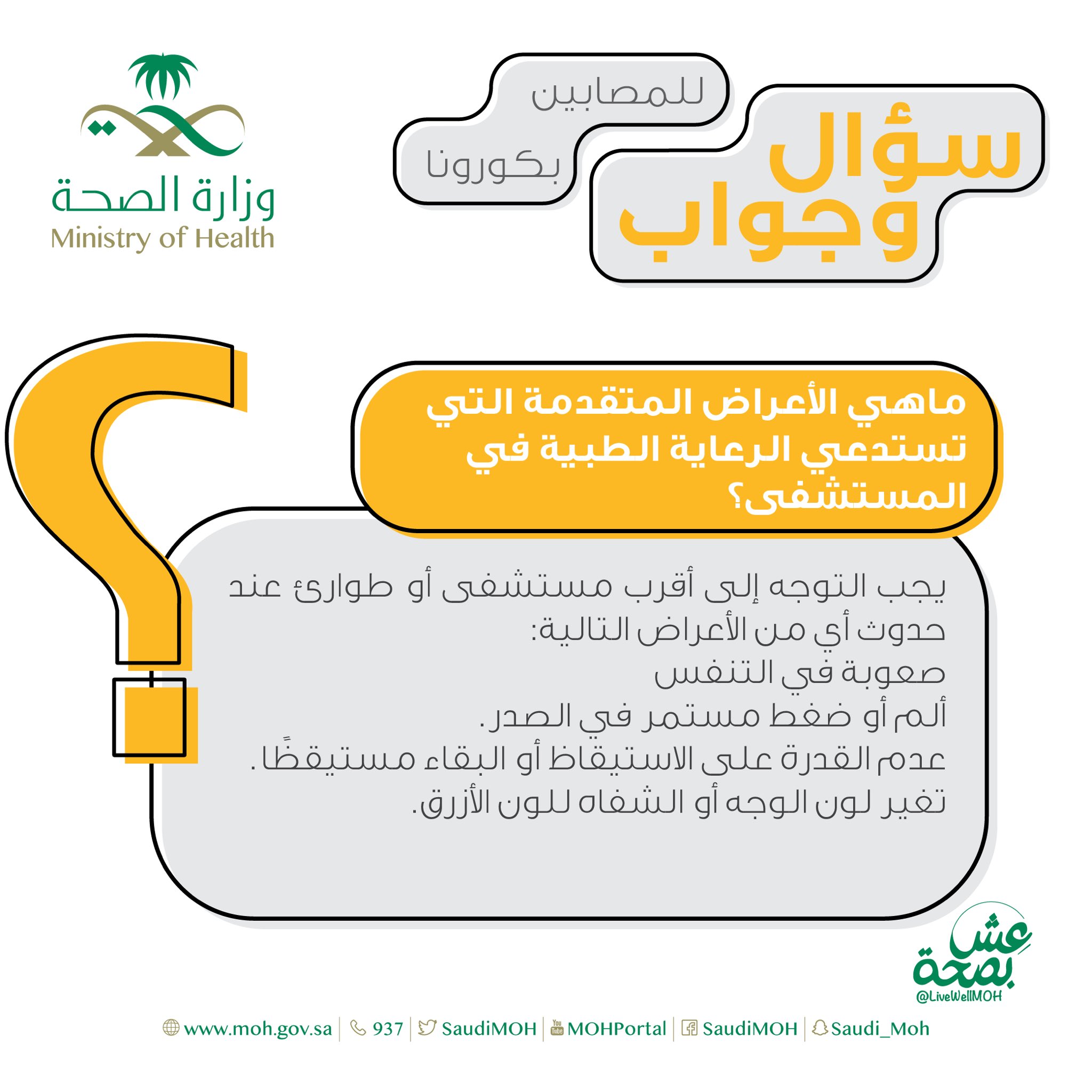 ماهي اعراض كورونا وزارة الصحة السعودية. جميع الحقوق محفوظة وزارة الصحة المملكة العربية السعودية. في 31 ديسمبر من عام 2019م تم إبلاغ المكتب الإقليمي لمنظمة الصحة العالمية في الصين بحالات الالتهاب الرئوي المسبب لمرض غير معروف تم اكتشافه في مدينة ووهان بمقاطعة هوبي الصينية وتم إعلان فيروس كورونا الجديد على أنه. وتأتي هذه الخطوات مواصلة لجهود الصحة التوعوية للتعامل مع فيروس كورونا المستجد حيث أشارت إلى أن أبرز أعراض الإصابة بالفيروس هي. وزارة الصحة تعلن حالات الإصابة والوفاة الجديدة.