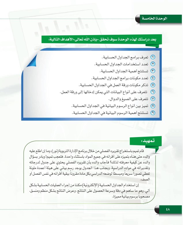 مكونات الجداول الحسابية