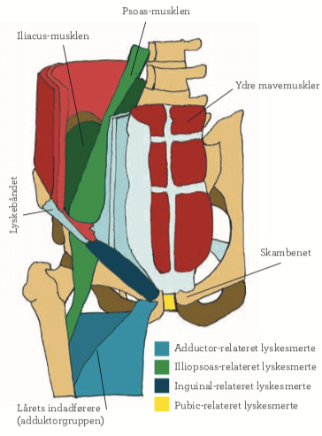 På grunn av den komplekse anatomien i området er det vanskelig å teste en muskel isolert. I menneskelig anatomi er lyske overgangen mellom underliv og lår innvendig i lysken ligger lyskekanalen en åpning i bukmuskulaturen lyskebrokk er utposing av bukhinnen gjennom lyskekanalen. Båndet er for størstedelen dannet ved en sammenfiltring av buk og lårmuskulaturens. Man graderer muskelstrekk inn i grad 1 grad 2 grad 3 eller grad 4 avhengig av hvor alvorlig det er.