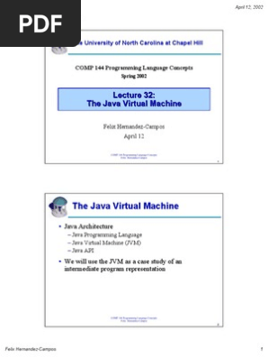 Java virtual machine technology overview this chapter describes the implementation of the java virtual machine jvm and the main features of the java hotspot technology. Every java developer knows that bytecode will be executed by jre java runtime environment. The java virtual machine specification vii 4 4 5 the constant long info and constant double info structures 83 4 4 6 the constant nameandtype info structure 85 4 4 7 the constant utf8 info structure 85 4 4 8 the constant methodhandle info structure 87 4 4 9 the constant methodtype info structure 89 4 4 10 the constant invokedynamic info structure 89 4 5 fields 90. A specification where working of java virtual machine is specified.